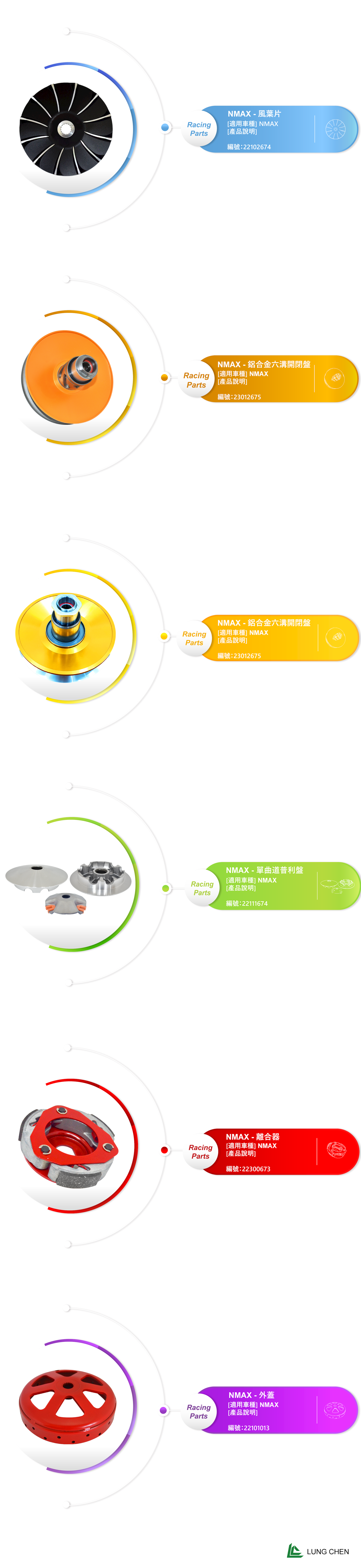 ►外蓋 ►風葉片 ►單曲道普利盤 ►離合器 ►鋁合金開閉盤